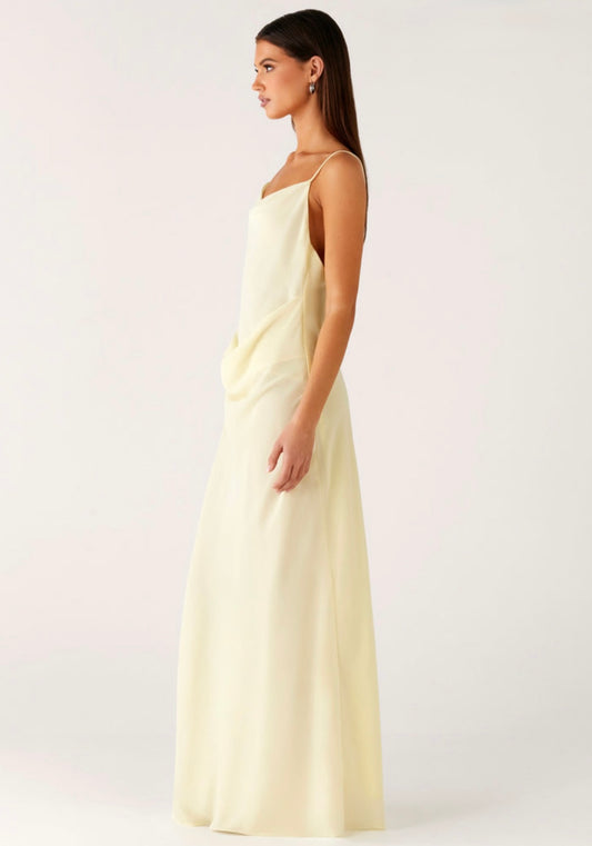 Joanna Satin Maxi Dress in Lemon