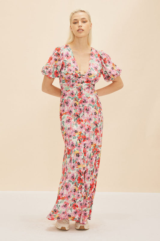 Mirella Puff Sleeve Dress in Pink